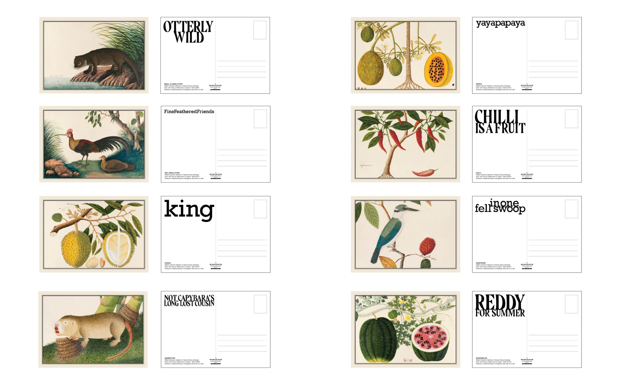 – Sold OutPOSTCARDDimension: 15 x 10.5cm SMALL CLAWED OTTER, RED JUNGLE FOWL, DURIAN, BAMBOO RAT,PAPAYA , CHILI, KINGFISHER , WATERMELON The William Farquhar Collection comprises 477watercolour drawings commissioned by WilliamFarquhar, the first Resident...